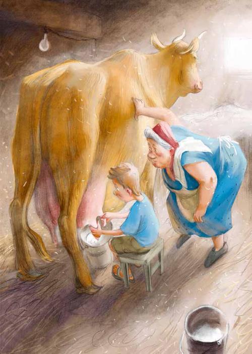 Бабушка легонько похлопала корову по спине и сказала: