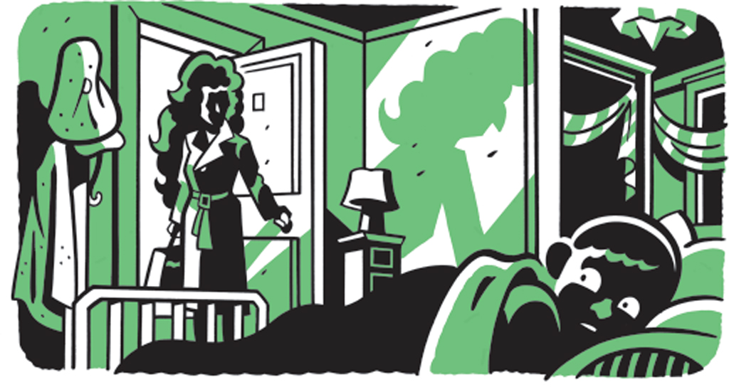 I didn’t fall for that old trick. I listened to Theodora sigh, and then, with a great creaking, she got out of bed and pattered to the bathroom. There was a click and a small stripe of light fell across my face. I let it. Theodora rustled around in the bathroom and then the light went out and she walked across the Far East Suite with her feet sounding different than they had. She’d put on her boots, I realized. She was going out in the middle of the night, just when the train was coming to a stop.