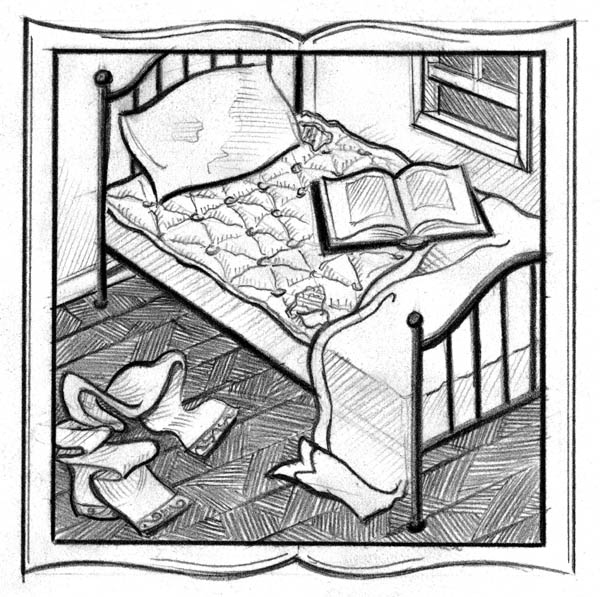На этот раз Клаус был тем бодлеровским ребенком, который метался беспокойным сном на кровати, а Вайолет бодрствовала при свете луны. Весь день сироты выполняли олафовские задания и почти не общались между собой. Клаус слишком устал и пал духом, чтобы разговаривать, а Вайолет слишком глубоко ушла в свой изобретательский мир и была занята исключительно разработкой своего плана.