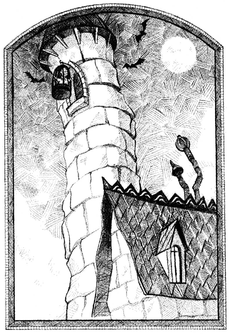 Вайолет повернула голову в сторону Графа Олафа, но, поскольку ей не хотелось встречаться с ним глазами, она поглядела вниз, и взгляд ее упал на его глаз, то есть глаз на щиколотке, который с самого первого дня их здешней несчастной жизни следил за бодлеровскими сиротами. Тогда она перевела взгляд вверх, вдоль тощей, неряшливо одетой фигуры, и, увидев, что Олаф указывает своей костлявой рукой куда-то вверх, задрала голову и там, в одном-единственном окошке запретной башни, сложенной из грязного камня, увидела что-то вроде птичьей клетки.