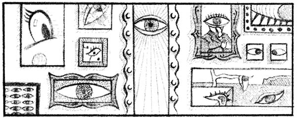 Вайолет оглядела скудно освещенную неряшливую комнату. В течение вашей жизни вам приходилось, наверное, замечать, что людское жилье обычно отражает личность своих обитателей. В моей комнате, например, собраны самые разные предметы, которые представляют для меня особую важность. Среди них – пыльный аккордеон, на котором я могу сыграть несколько грустных мелодий, толстая пачка записей о деятельности бодлеровских сирот и давным-давно сделанная, потускневшая от времени фотография женщины по имени Беатрис. Предметы эти для меня очень ценны и дороги. Комната в башне тоже содержала вещи, которые, видимо, были важны и дороги для Графа Олафа. Но вещи эти были страшные. Обрывки бумаги, на которых неразборчивым почерком были записаны его злодейские планы; они неопрятным ворохом лежали на «Матримониальном праве», которое он отобрал у Клауса. Тут и там стояло несколько стульев и горело несколько свечей, которые отбрасывали колеблющиеся тени. По всему полу валялись пустые бутылки из-под вина и немытые тарелки. Но больше всего там было рисунков – карандашных и маслом, а также вырезанных из дерева изображений глаз – больших, маленьких, всяких: глаза на потолке, глаза, процарапанные на грязном дощатом полу, глаза, кое-как нарисованные на подоконнике, а один большой глаз красовался на круглой ручке двери, которая вела на лестницу. Жуткое место!