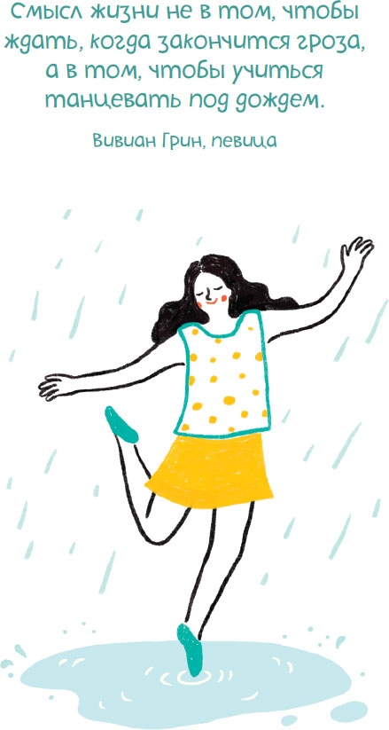 У нас не получится избежать таких испытаний, но в наших силах уменьшить волнение. Человек, который умеет переживать о будущем, может и спланировать его. Если снизить волнение до уровня, поддающегося нашему контролю, и хорошо с ним справляться, то оно побудит нас стать лучше. Датский философ С. Кьеркегор писал: «…Тот, кто научился страшиться надлежащим образом, научился высшему»[3]. Сталкиваясь с ежедневными проблемами, не цепляйтесь за них. Представьте: как стало бы скучно, будь наш жизненный путь слишком гладок? Ведь намного интереснее, когда есть и подъемы, и спуски, и дорожки из гравия! Конечно же, наше сердце трепещет при виде огромного количества возможностей, но это еще и тревожит. Не думайте об этом чересчур много – лучше делайте именно то, что вам хочется.