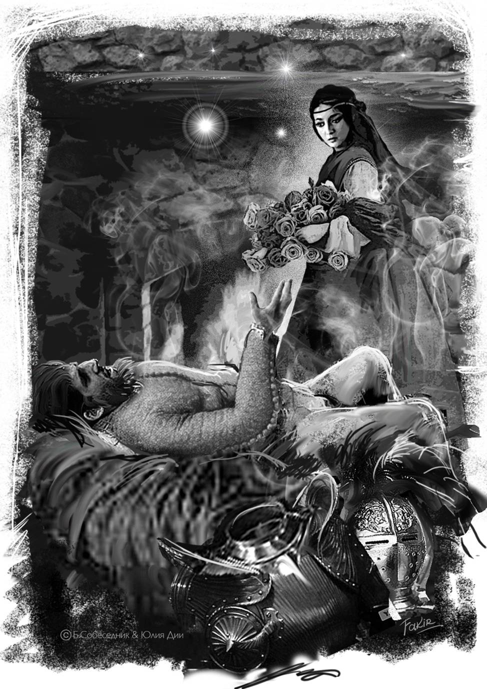 – …То была Сарацинка, я сразу понял, ибо прекрасные розы благоухали в руках её…