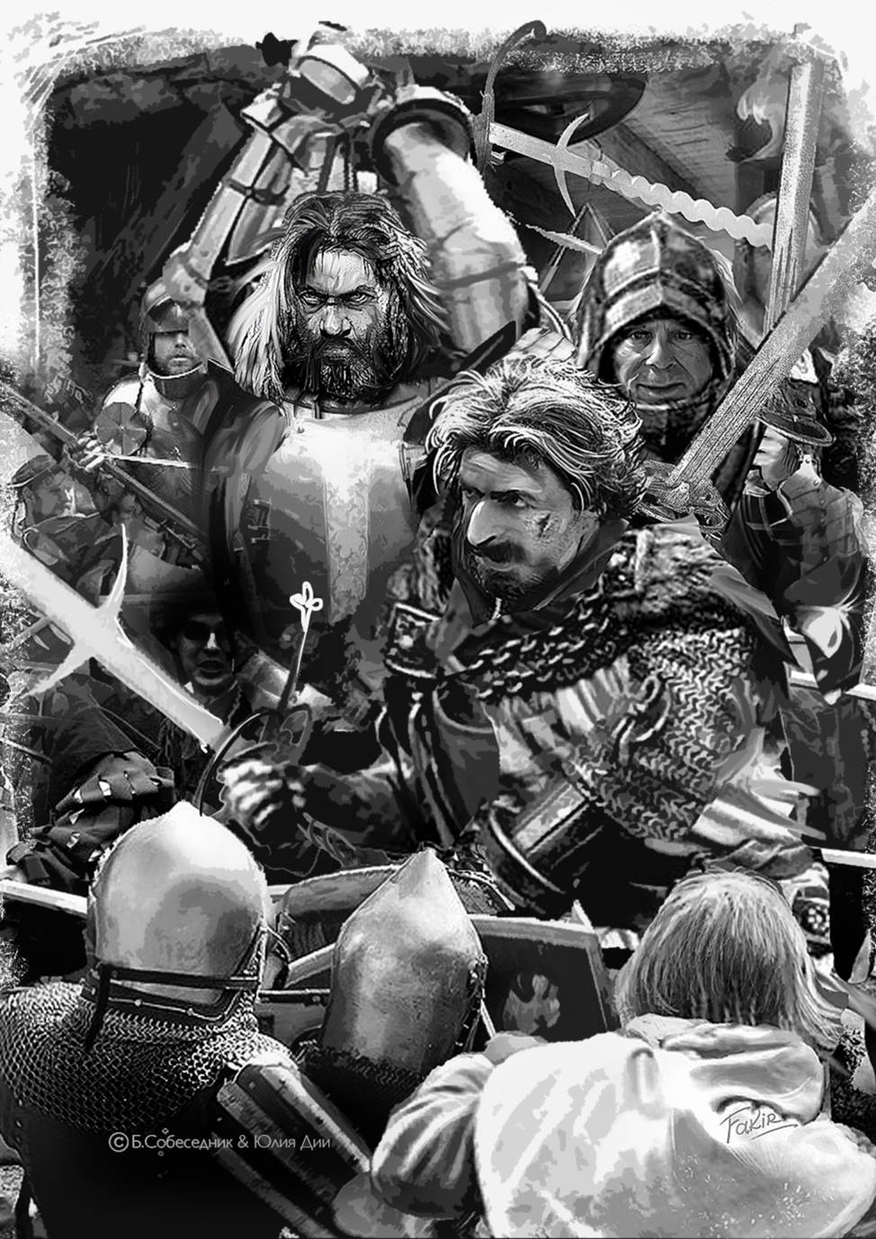 – Хм! Могла бы уж и сама как-нибудь допетрить, бестолковка! Все уже небось окромя тебя… Но я тебе всё ж таки скажу. Грюнвальдская битва, лапонька, в которой нашей неразлучной троице вскорости предстоит поучаствовать, – преимущественно кавалерийское сражение. Вникаешь? …Опять нет?! – фон Штауфен потихоньку начал терять терпение. – Да что ж такое-то?! М-м-м-м… Слушай сюда! В начале пятнадцатого века, точнее – в году одна тысяча четыреста десятом от Рождества Христова, понимаешь, пехота ещё не особо в почёте-то была. На лошадках воевали в основном. Вот и нам снова, судя по всему, придётся в полном обвесе кривляться, да к тому ж на лошадях тож, кстати, в броне, что при возникновении подобных внештатных ситуаций, вернее… гм… при Бориной патологической способности на каждом шагу их провоцировать, вполне может вызвать экстренную необходимость использования… мнэ-э-э-э… нестандартного, будем говорить, оборудования. Уразумела, ласточка? …Ну наконец-то! Уф! – с удовлетворением отдувался Роланд. – В общем, посидел Мараков, гений наш электрический, Тесла, ёб его через забор… посидел… Хе-хе! Помараковал, так сказать, и выдал на-гора эдакий, знаешь ли, супер-пупер-психоконнектор Рубина – огогошеньки го-го!!! Бронетанк без мыла в рамку проскочит, не то что там пара-тройка тяжёлых кавалеристов! Мы монстра сего, естественно, пока нигде не светили, не регистрировали… Хе-хе! Вдруг отберут, охальники? На запчасти, н-н-нда… Поэтому помалкивай до поры до времени, милая девушка, очень тебя прошу!