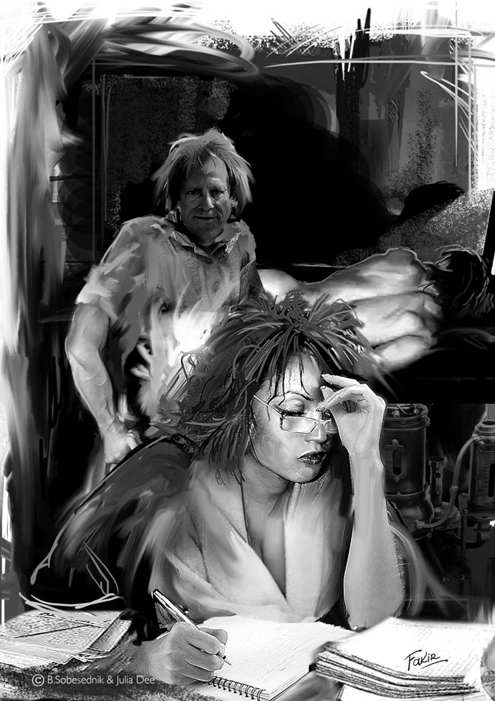 С произведением Кобо Абэ, опять же, с позиции науки довольно-таки зубодробительным, справилась Сергеевна отменно и безо всякой посторонней помощи. Вот и сейчас, обложившись многочисленными таблицами, справочниками, методичками, нацепив слабенькие Юрины очки на свой хорошенький классический носик, отрешённо погрузилась в сложнейший тензорный анализ 20 … хм… сложившейся ситуации. При этом наблюдать за увлёкшейся девушкой, согласитесь, всегда интересно. Тем более – прехорошенькой!