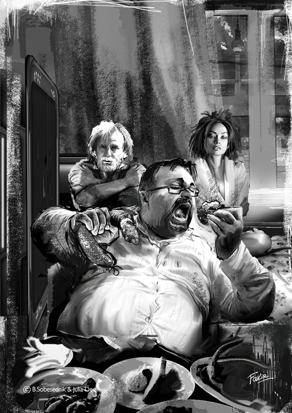 – О-о-о-о! Как всё запущено! Ролик, милый, мне там где-то в холодильнике початая бутылка водки пригрезилась. Глюки? …Нет? В таком случае нацеди, будь добр, граммчиков сто, не больше. И минералки прихвати, запить, если не сложно! …Кончилась? Тогда простой воды стаканчик. Слаб мальчонка…