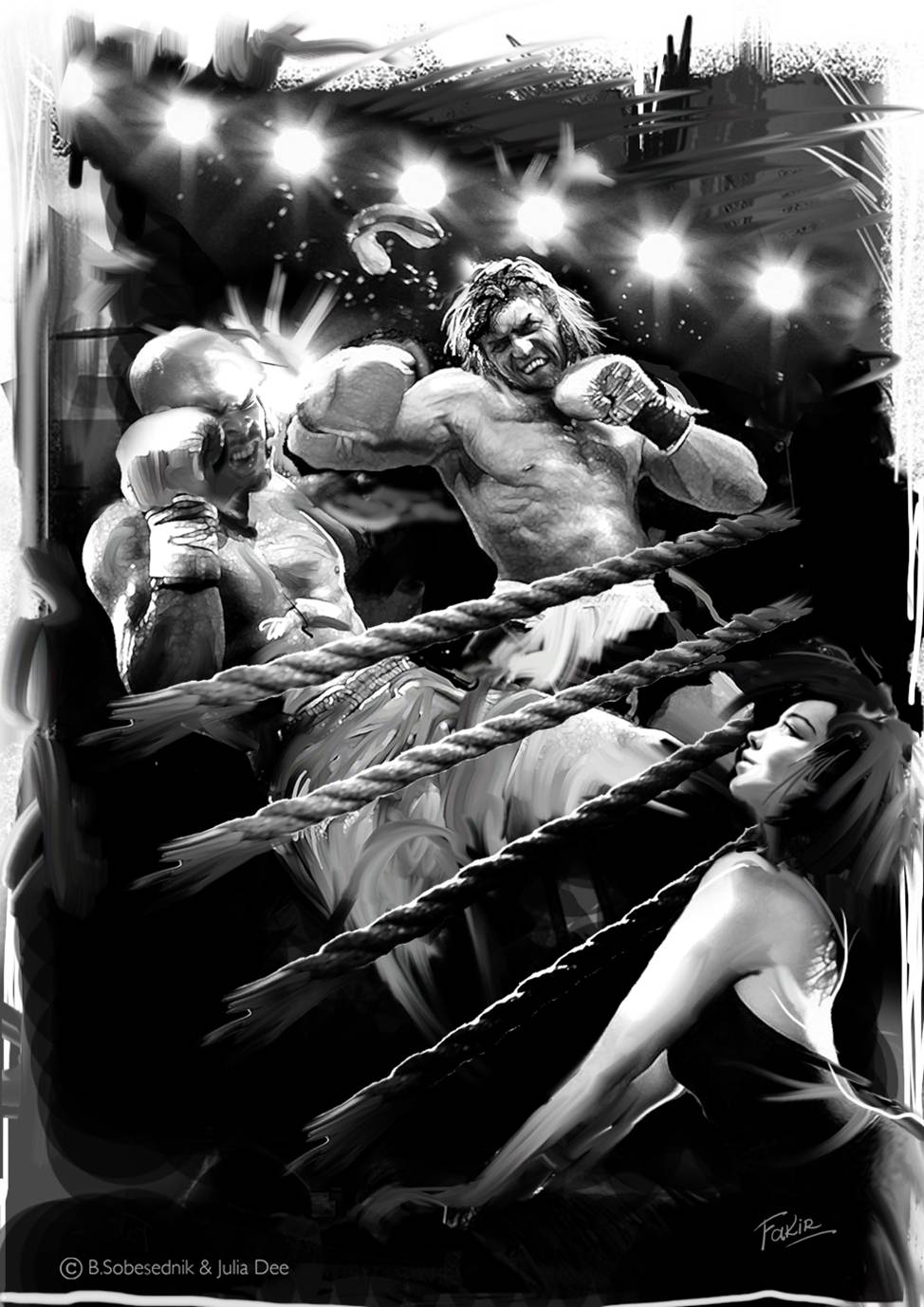 – Уау! Кто ж не помнит-то? Я в тот эпохальный вечер у самых канатов тёрлась. Обожаю брызги боевого мужского пота! Всё на моих глазах происходило. Ба-бах! Мощнейший лоу-кик в бедро, тот на мгновение равновесие потерял, чах-бах-трах! – и тут же скушал правый крюк по бороде! Фантастика! Рухнул, точно с дуба жёлудь! Супер! Прям там бы Юрке и дала, да не знакомы мы ещё были! Но… Тут такая штука-дрюка, Ролик… Уверена, это не всё, что их прямо или косвенно связывало.