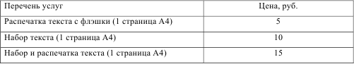 Если к нам приходит клиент и говорит: «Я хочу распечатать», то это будет стоить пять рублей, а если он просит набрать текст – 10 руб., а если набрать и распечатать – 15 руб.