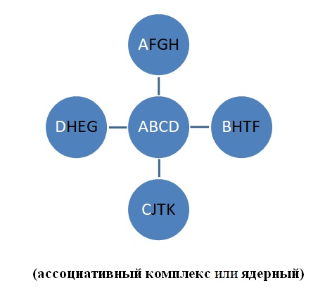 В итоге на данном этапе развития ребёнок одним и тем же словом называет кошку, меховой воротник (потому что мягкий и пушистый, как кошка) и вилку (потому что царапается, как кошка). В то время как образование истинного понятия по признаку А приведёт к тому, что в это понятие будут входить пары АВ, АС, АD и т.д. Но при формировании допонятийного комплекса связь предметов будет проводиться по совершенно иному типу. В комплекс, ядром которого является АВCD, будет входить АFGH (только по сходству элемента А), ВHTF (только по сходству элемента В) и т.д. Но в итоге, если изъять из комплекса его изначальное ядро (АВCD), то мы обнаружим, что между оставшимися элементами вовсе нет никакой связи.