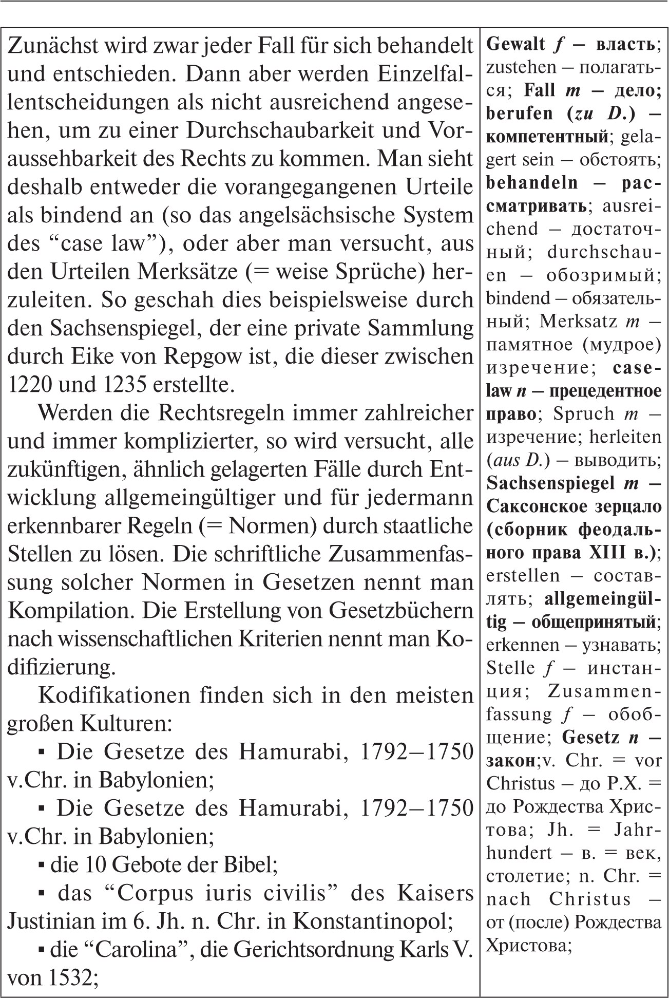 ● Kodifizierung nennt man die wissenschaftliche Ausarbeitung von vollständigen systematisierten Gesetzeswerken.