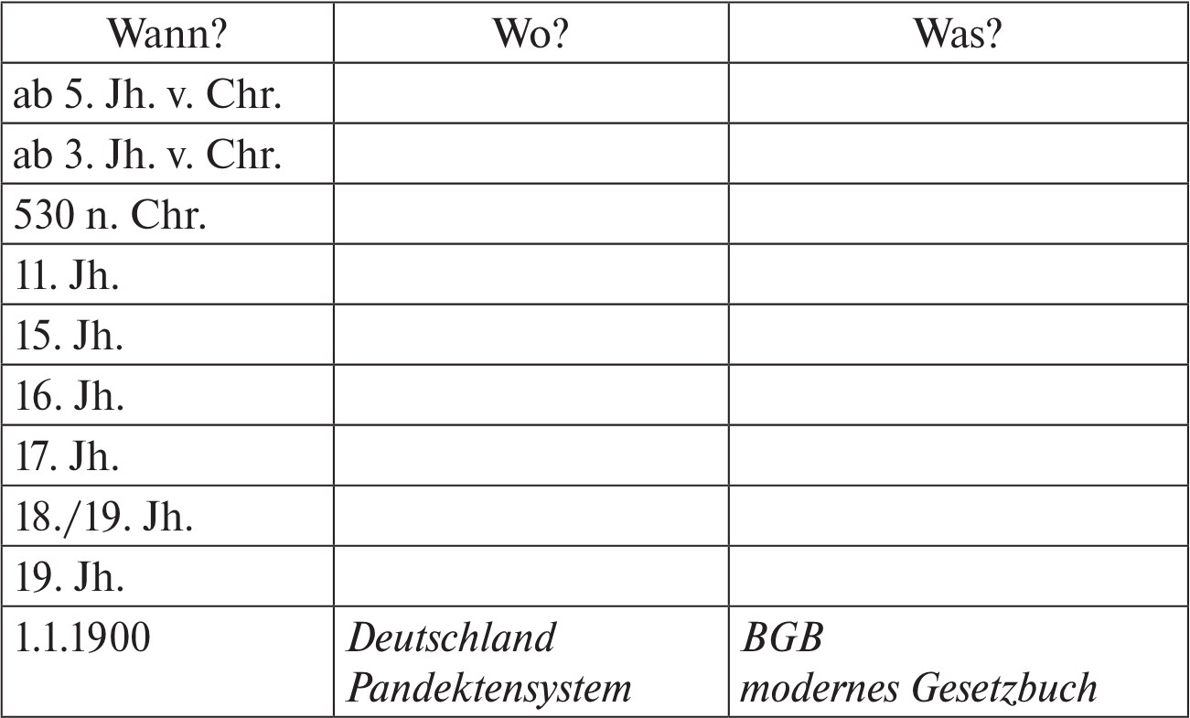 Füllen Sie die historische Tabelle aus. Nennen Sie die wichtigsten Ereignisse in der russischen Rechtsgeschichte.