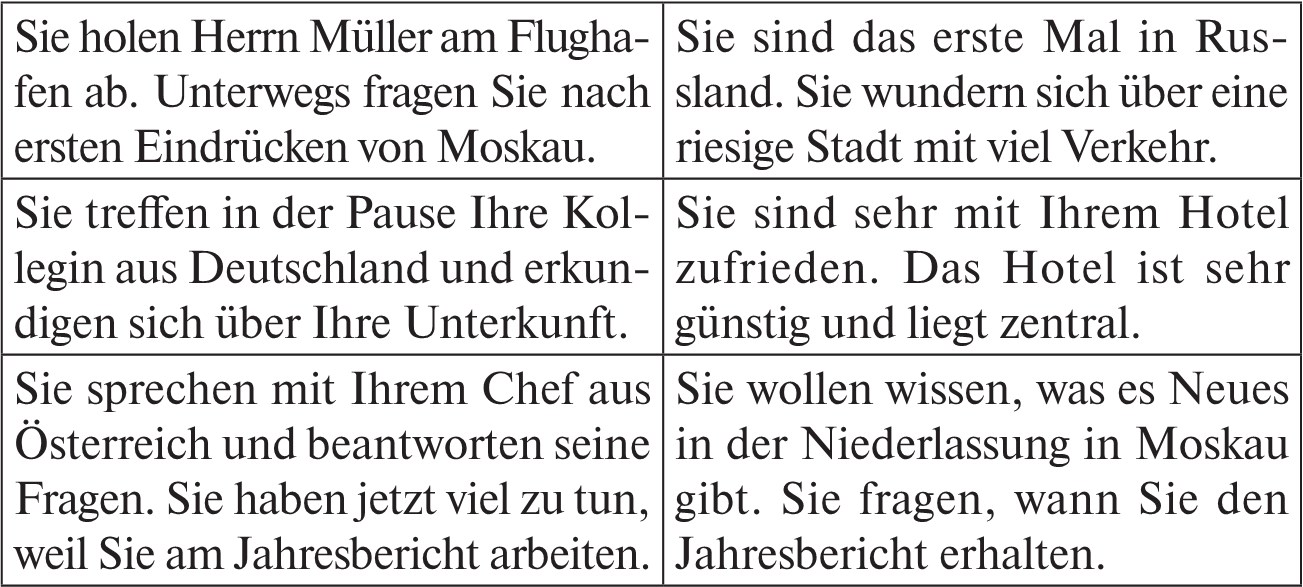 Schreiben Sie den Buchstaben für das passende russische Äquivalent in das Kästchen unten. Gibt es für einen deutschen Begriff bzw. eine Wendung kein geeignetes Äquivalent, dann schreiben Sie den Buchstaben X in das Kästchen.