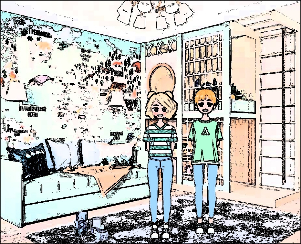 – Вот это да… – только и сумел промолвить мальчик. От зрелища захватывало дух. Мало того, что комнаты была огромна по своим размерам, так там ещё был спорт комплекс, совмещённый с игровым: лесенки, лазалки, канаты, горка, качели и даже гамак. Кроме того, огромная двух этажная кровать, на первом этаже которой был небольшой тайный уголок с книжным шкафом ( пока пустым ) , письменным столом и полочками для всякой всячины, а так же подвешенное к опоре кресло, такой величины, что в нём можно было спать.