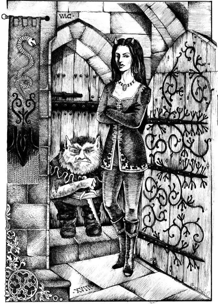 Науро, чье одеяние пропиталось чужой кровью, в отличие от представительниц прекрасного пола, был неуязвим. Карлик юрко кувыркался по земле, высоко прыгал, невзирая на свое, далеко не стройное, телосложение, и ухитрялся поразить врагов в самые необычные места. Ему, все же, удалось всадить короткий кинжал в глаз лучника. Теперь стрелку, если выживет, придется выбрать другой род деятельности. Калеча врагов, эльф умудрялся уходить от ударов, зачастую, осыпая недругов нелестными словцами. Потасовка с мендарвцами ему явно доставляла удовольствие.