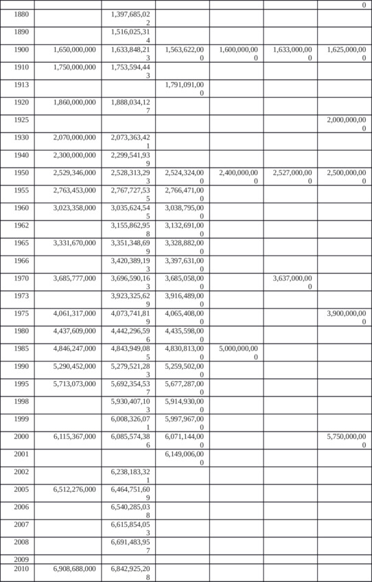 Таблица 2. Оценки народонаселения различными авторами в конце прошлого и начале нынешнего века, а также официальные данные ООН