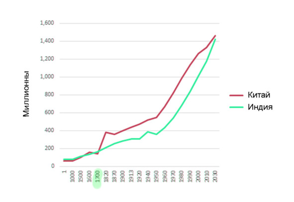 Рисунок 61. Темпы роста населения в Индии и Китае