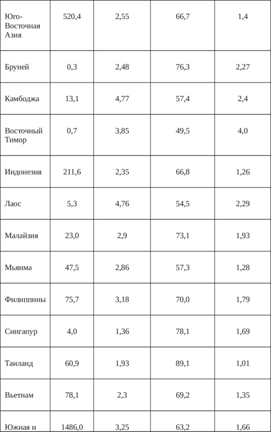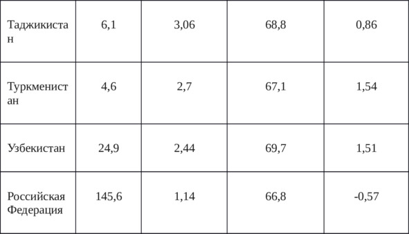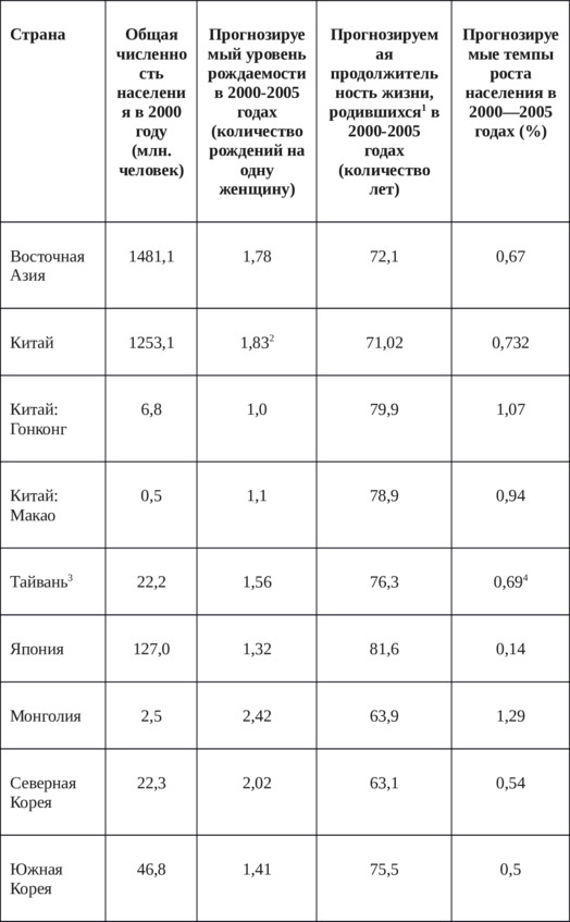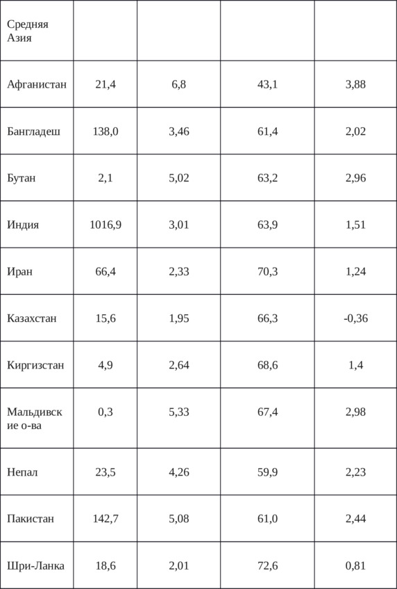 Таблица 4. Демографические показатели в странах Азии в 2000—2005 году