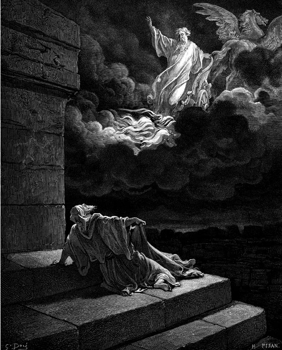 Уже колесница скрылась из виду, как вдруг к ногам Елисея упала с неба одежда пророка Илии.