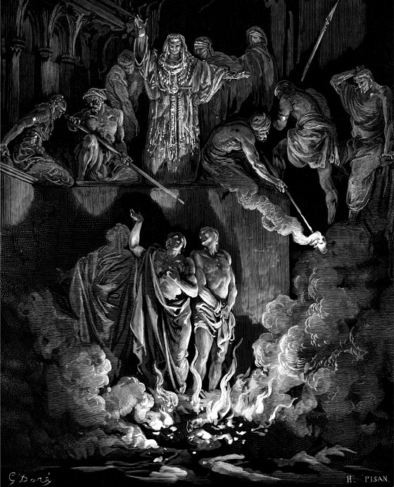 Итак, Навуходоносор поставил себе памятник, собрал народ и велел всем молиться перед его статуей. Недалеко от статуи была выстроена огромная печь, в которую положили много дров и сильно растопили. «Кто не будет молиться моей статуе, – пригрозил Навуходоносор, – тех буду бросать в эту печку».