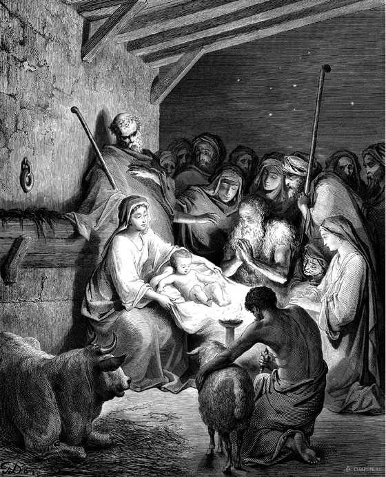 В ту самую ночь, когда родился Господь наш Иисус Христос, в поле, недалеко от Вифлеема, пастухи стерегли стада: смотрели за своими овечками, чтобы они не разбежались и чтобы их не украли воры и не съели дикие звери. Ночь холодная. Пастухи развели огонь и греются около него. Темно. Чуть-чуть во тьме ночной мелькает слабый свет от небольшого костра, у которого сидят пастухи. Вдруг вокруг пастухов делается светло, и перед ними является ангел Божий. Пастухи испугались. «Не бойтесь, – сказал им ангел, – я сообщаю вам о великой радости для всех людей. Сейчас в городе Давидовом (то есть в Вифлееме) родился Спаситель, Который и есть Христос Господь. И вот как вы можете узнать Его: вы найдете в яслях спеленутого Младенца».
