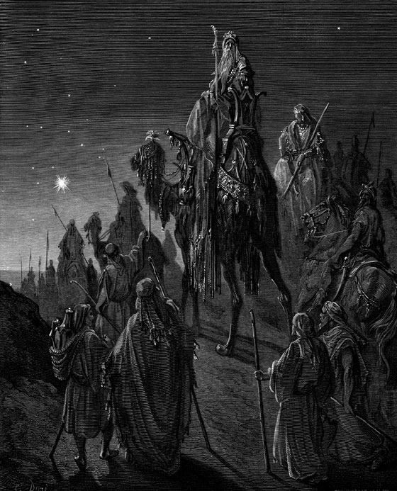 Восточные волхвы, путеводимые чудесной звездой. (Евангелие от Матфея 2:1–12)