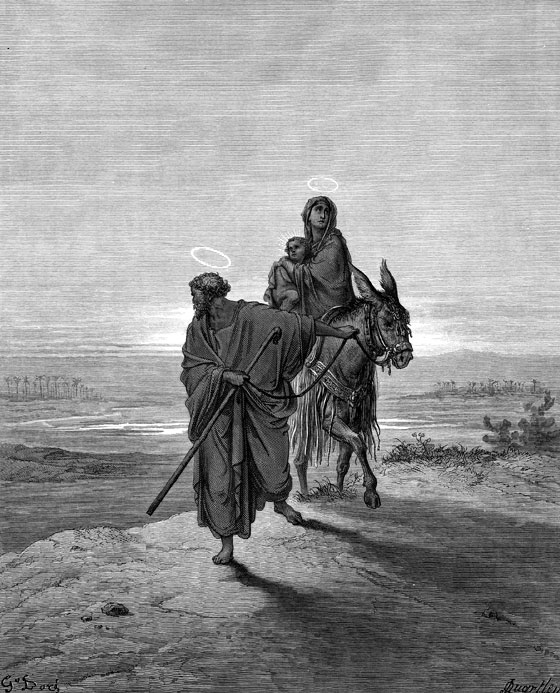 Когда волхвы ушли из Вифлеема к себе на родину, ангел Господень явился во сне Иосифу и сказал ему: «Встань, возьми Младенца и Матерь Его, беги в Египет и будь там, покуда не скажу тебе, потому что Ирод будет искать Младенца, чтобы погубить».