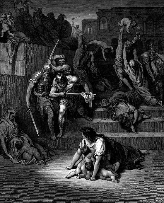 У злого господина и слуги большей частью бывают злые. У жестокого и бесчеловечного Ирода и солдаты жестокие. Они входят во все дома, ищут во всех углах, не спрятан ли где-нибудь ребенок, и без всякой пощады убивают каждого мальчика, которому, как им кажется, не больше двух лет.