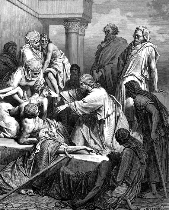 Иисус Христос исцеляет больных. (Евангелие от Матфея 4:24–25)