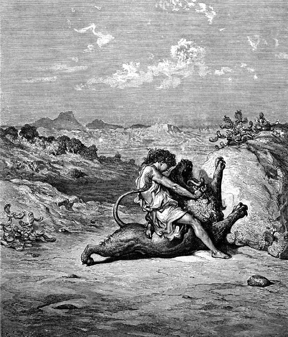 Самсон растерзывает льва. (Книга Судей Израилевых 14:1–16)