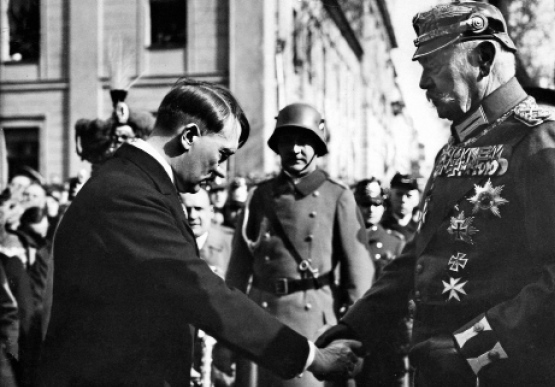 Адольф Гитлер пожимает руку рейхспрезиденту Паулю фон Гинденбургу. Потсдам, 21 марта 1933. Федеральный архив Германии