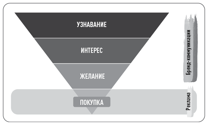 Предположим, вы в интернете увидели рекламный баннер, предлагающий купить автомобиль. Проблема в том, что вы понятия не имеете, что это за бренд, из какой он страны и вообще почему вы должны тратить время на что-то неизвестное. Другое дело, если вы видите рекламу бренда, который вам не только знаком, но и близок с точки зрения общих ценностей, стиля и т. д. Этим и занимаются бренд-коммуникации: прежде чем подвести потребителя к действию через рекламный инструментарий, необходимо сформировать у него определенное знание, вызвать интерес, пробудить желание обладать этим товаром.