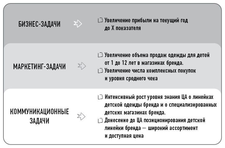 Рис. 6. Пример выстраивания системы задач детского бренда одежды