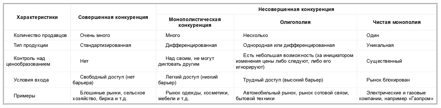 Таблица 2. Типы конкуренции