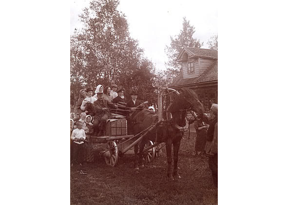 Перевозка приданого. 1902 г. Российский этнографический музей. Свадебное деревце прикреплено к дуге.