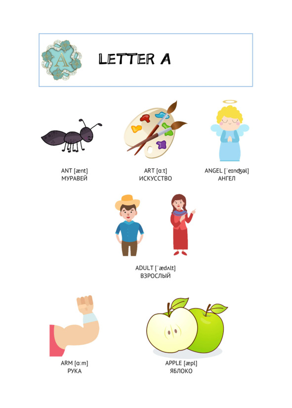 2. Правило мелкой моторики. Давно известно: мелкая моторика способствует развитию мозга. Развивая руку вашего ребенка, вы растите его умнее и сообразительнее. Поэтому кроме изучения и запоминания слов, мы с вами будем мастерить! После каждой буквы английского алфавита есть раздел с мастер-классом, где вам предлагается сделать поделку на ту букву, которую вы только что изучили. Красочная, необычная поделка повышает привлекательность процесса изучения английского языка, поддерживает интерес ребенка к предмету и развивает мозг. И потом, создавать что-то совершенно новое совместно с ребенком – бесценно.