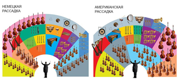 Решение, каким способом рассадить оркестр, принимает дирижер.