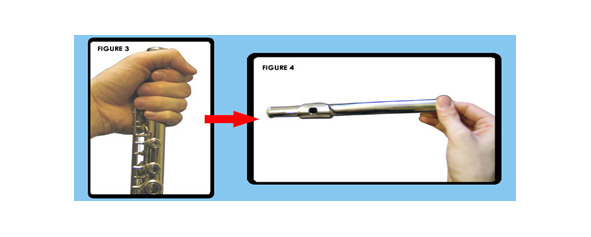 3. В одной руке на ладони держите колено флейты, возьмите также корпус флейты вокруг раструба головки.