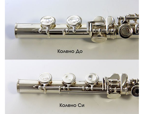 Эта особенность влияет на диапазон звучания инструмента. Флейта с коленом «Си» может играть на пол тона ниже, чем флейта с коленом «До». Делайте выбор между двумя коленами на ваш собственный вкус. (рисунок представлен выше)