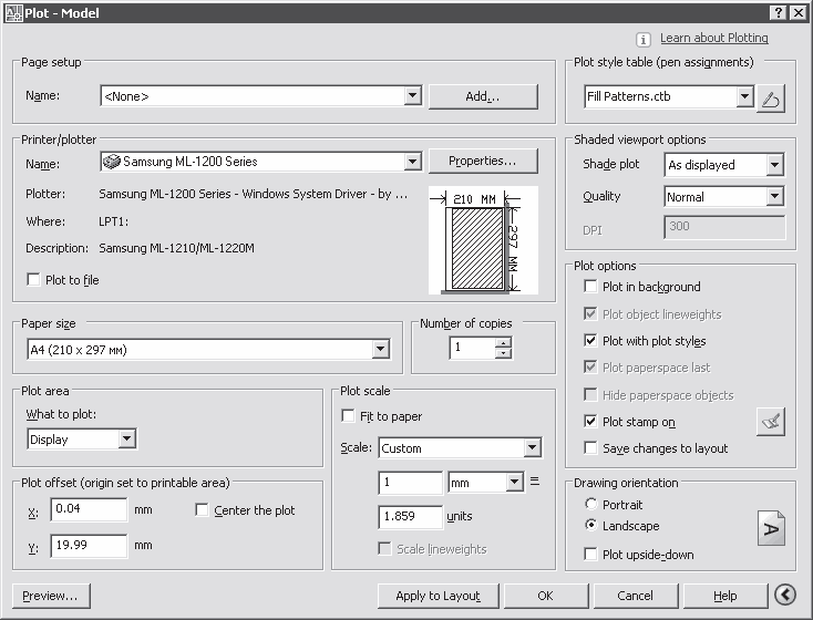 Рис. 1.13. Диалоговое окно вывода на печать пространства модели