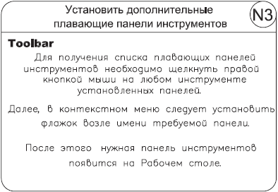 Панели инструментов могут быть плавающими (float) или закрепленными (dock), с фиксированным местоположением. Допускаются изменения размеров плавающих панелей, а также их перемещение по графическому полю (рис. 2.3). Плавающую панель можно сделать закрепленной, перетащив ее с помощью мыши за пределы графического поля. И наоборот, как только закрепленная панель попадает в область графического поля, она превращается в плавающую.