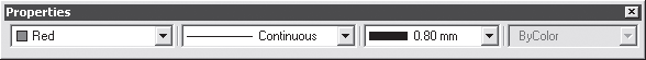 Панель свойств объектов Properties, показанная на рис. 2.9, размещается на рабочем столе под стандартной панелью инструментов и предназначена для работы с цветом, типом и весом линий.