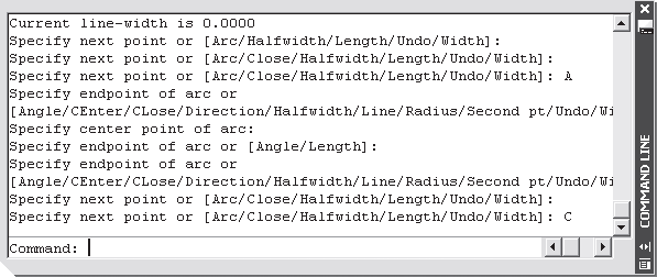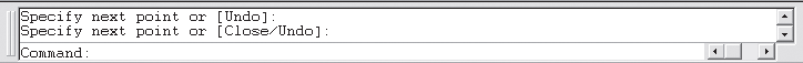 Окно командных строк обычно расположено над строкой состояния; оно служит для ввода команд и вывода подсказок и сообщений AutoCAD. Размеры окна, а следовательно, количество выводимых строк протокола можно изменять. При наличии в окне команд более одной строки перемещение по строкам осуществляется с помощью полосы прокрутки.