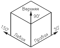 Изометрический стиль сетки и шаговой привязки помогает строить двумерные рисунки, представляющие трехмерные объекты (например, куб). Аксонометрия (в том числе и изометрия) – это не что иное, как средство изображения трехмерных объектов на плоскости, то есть имитация объема, а не трехмерная модель. Поэтому изометрические рисунки нельзя рассматривать в перспективной проекции или под различными углами. Имитация трехмерности достигается здесь за счет расположения объектов по трем изометрическим осям. При нулевом угле поворота шаговой привязки направления изометрических осей следующие: 30, 90 и 150°. Узлы сетки и шаговой привязки можно ориентировать вдоль левой, правой или верхней изометрической плоскости (рис. 1.11); переключение между плоскостями осуществляется нажатием функциональной клавиши F5 (или сочетания CTRL+E):