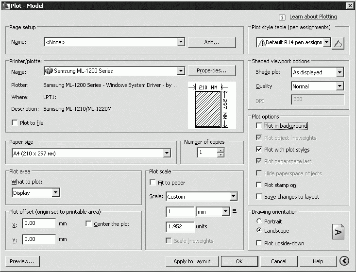Рис. 1.16. Диалоговое окно вывода на печать пространства модели