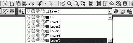 Установить текущий слой также можно, выбрав его из раскрывающегося списка управления слоями на панели инструментов (рис. 5.2).