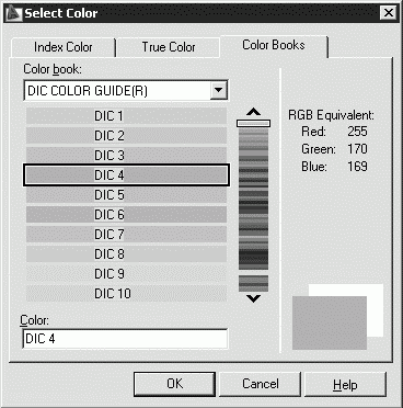 Интерес представляет работа с альбомами цветов – вкладка Color Books диалогового окна Select Color (рис. 5.4), – которые содержат именованные образцы, что позволяет улучшить вид рисунка и подготовить высококачественные презентационные материалы.
