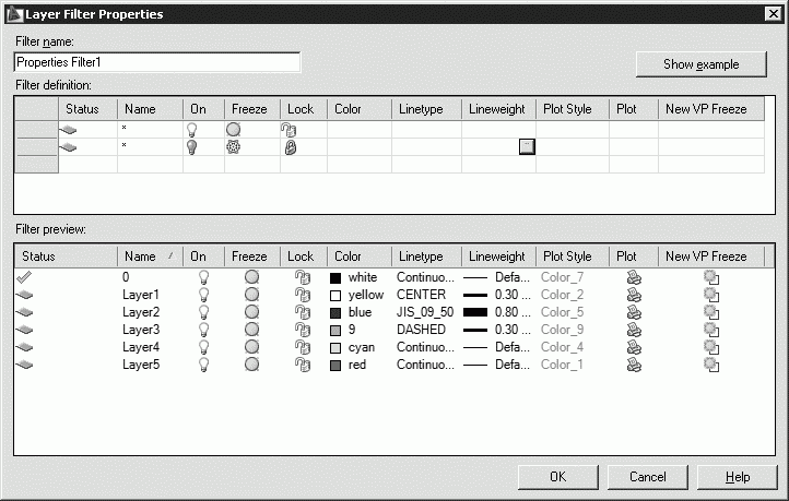 Иногда требуется, чтобы в списке имеющихся слоев Диспетчера свойств слоев Layer Properties Manager перечислялись только определенные слои. Для указания выводимых в список слоев используется функция фильтрации. Фильтрация слоев может производиться по следующим критериям: