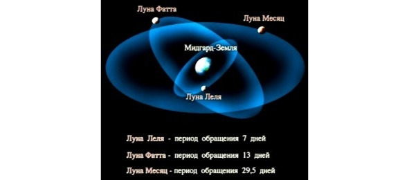 По мнению некоторых исследователей когда-то у нашей планеты было три Луны (спутника, рис. 13). Падение Фаты на Землю привело к глобальным планетарным катаклизмам: изменился наклон земной оси, материки раскололись, гигантская волна окатила несколько раз всю планету и атмосфера стала сильно загрязнённой из-за возросшей вулканической активности. Последний фактор стал причиной сильного похолодания на планете, которое длилось несколько столетий.