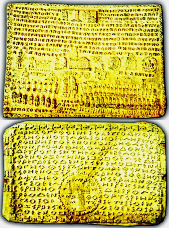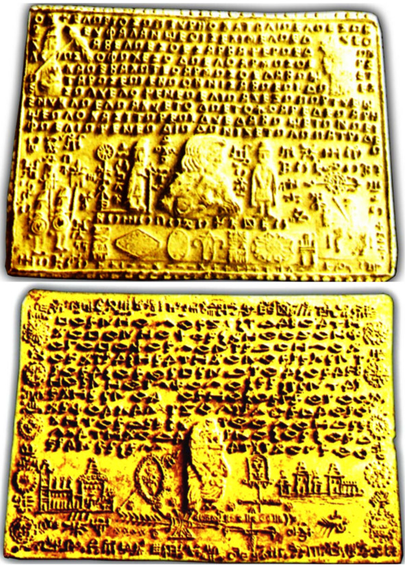 Большая часть золотых пластин по приказу Карла I была переплавлена, а на вырученные от продажи золота средства был построен один из самых красивых в Европе дворцов. Дабы сохранить для истории содержание пластин, с них перед переплавкой были сделаны точные свинцовые копии (рис. 18).