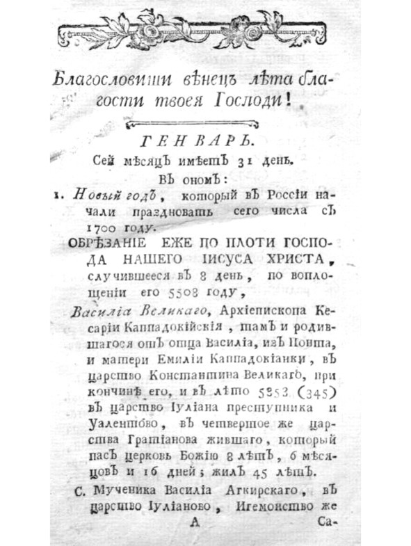 Из этих документов ясно видно, что Новый год начали праздновать 1-го января с 1700-го года от Рождества Христова, а само рождение Христа произошло в 5508-м году от СМЗХ, вернее дословно сказано: «Обръзанiе еже по плоти15 Господа нашего Iисуса Христа, случившиеся въ 8 день, по воплощенiи его 5508 году» (рис. 7).